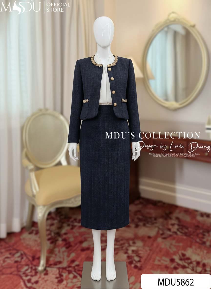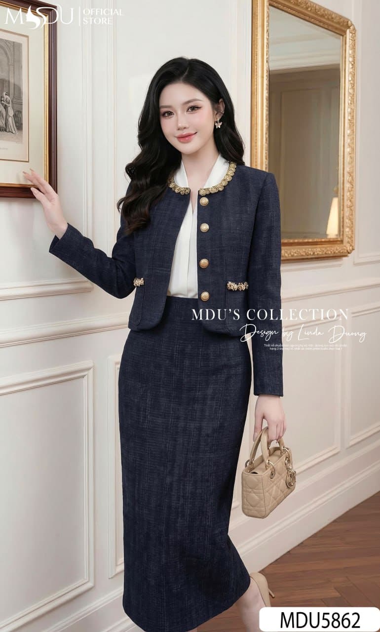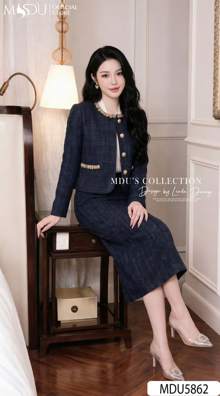 MDU Fashion mang đến thiết kế MDU5862 – set dạ tweed sắc xanh than quý phái, gợi nên vẻ đẹp sang trọng và thời thượng dành cho những ngày cần sự chỉn chu tuyệt đối. Gam màu trầm tinh tế không chỉ dễ ứng dụng mà còn giúp tổng thể trở nên đẳng cấp, phù hợp từ môi trường công sở đến các sự kiện quan trọng trong mùa lạnh.