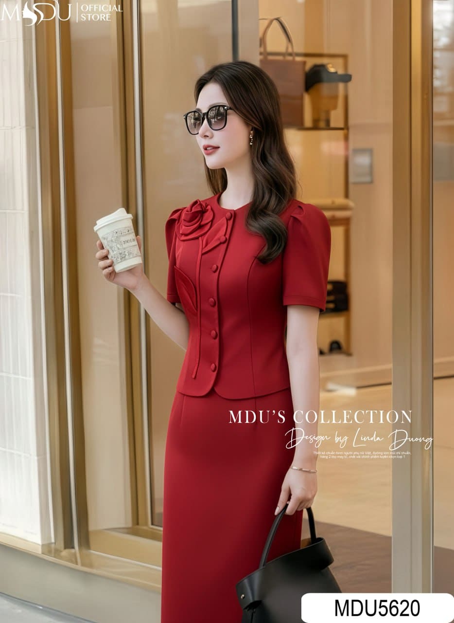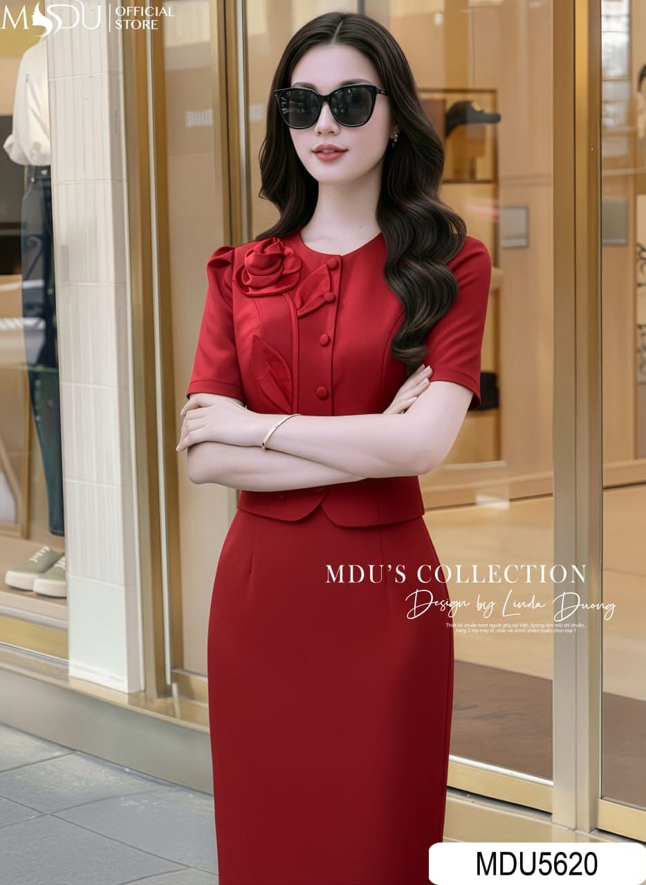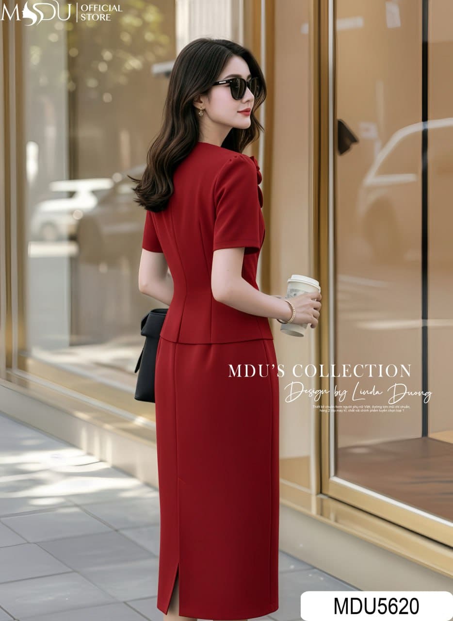 MDU5620 – set liền Xước Thái gam đỏ đô quyến rũ, vừa thanh lịch vừa cuốn hút. Áo kiểu tay ngắn với hàng cúc bọc đồng điệu, điểm nhấn hoa lụa Twist Satin tinh tế ở cổ áo. Chân váy midi dài qua gối thiết kế xẻ tà chồng độc đáo, tôn dáng và dễ di chuyển. Chất liệu ép mùng cẩn thận giúp giữ form cứng cáp, đứng dáng và hạn chế nhăn tối đa. Lý tưởng cho các buổi tiệc, công sở cao cấp hoặc sự kiện quan trọng, giúp nàng tỏa sáng mọi khoảnh khắc.