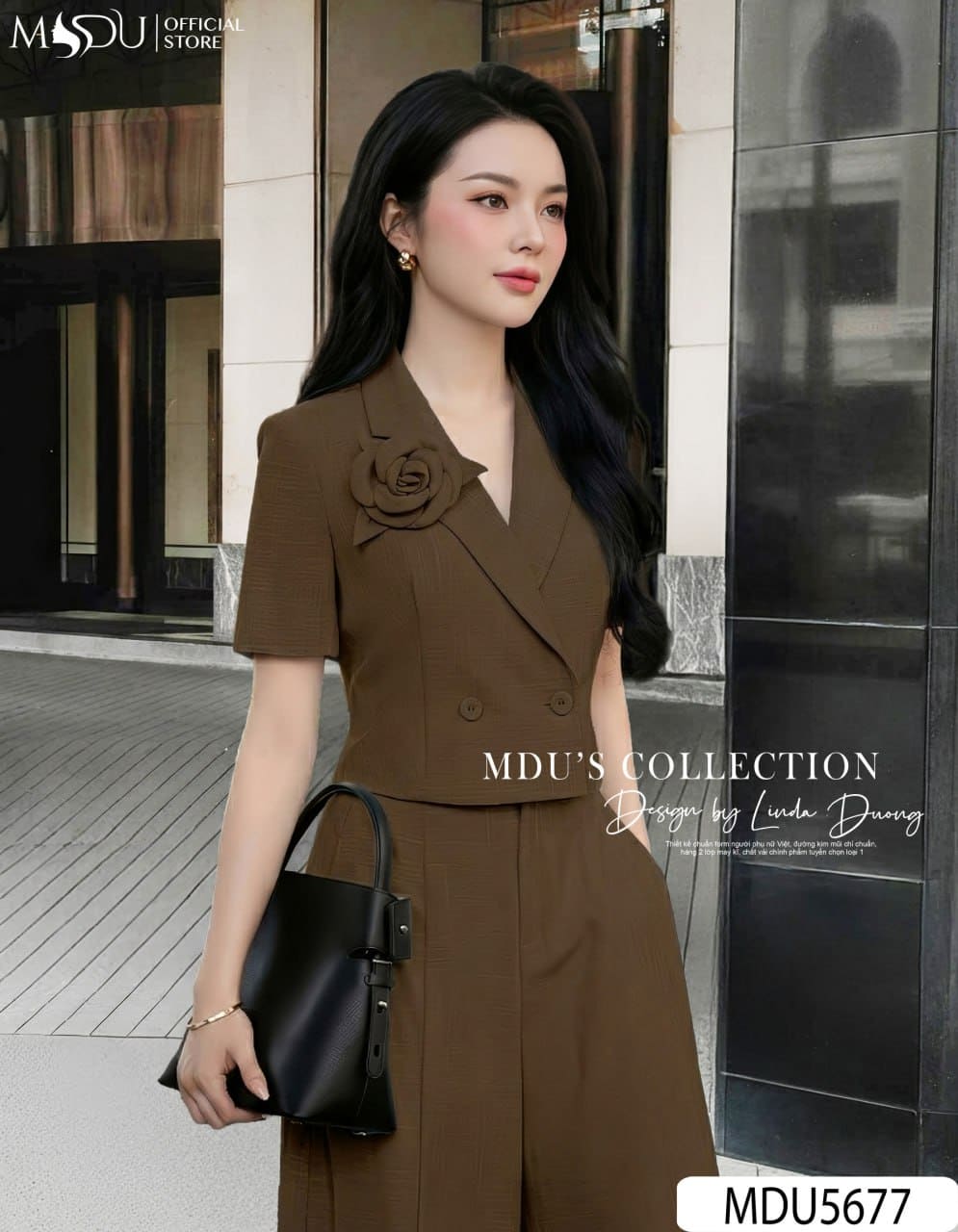 MDU Fashion hân hạnh giới thiệu thiết kế MDU5677 – set áo vest và quần tây mang sắc nâu trang nhã, thể hiện vẻ đẹp thanh lịch, hiện đại và đầy khí chất của quý cô công sở. Tổng thể được thiết kế chỉn chu, kết hợp hài hòa giữa chất liệu cao cấp và phom dáng tinh tế, giúp nàng luôn tự tin trong mọi hoàn cảnh.