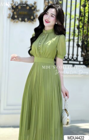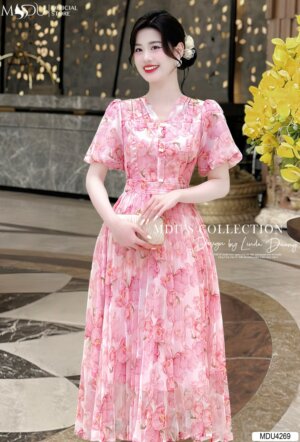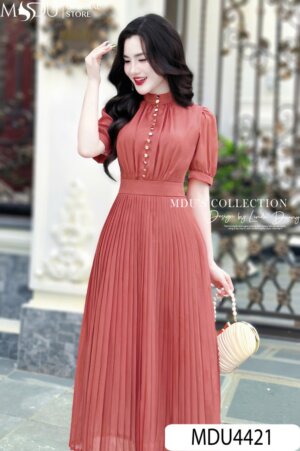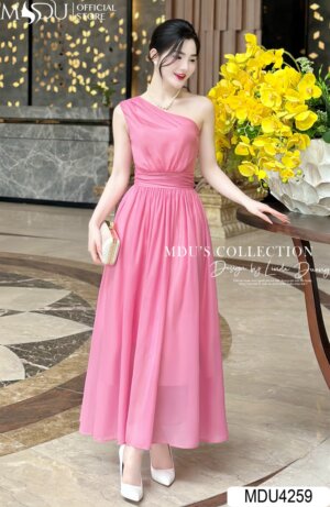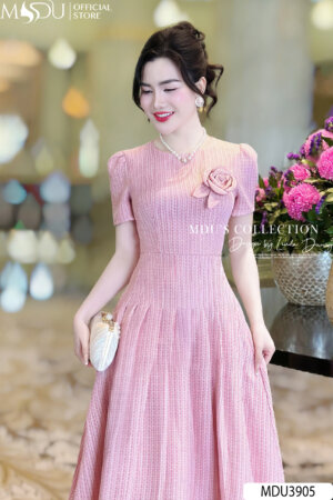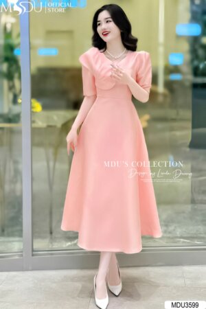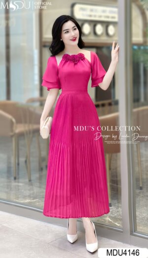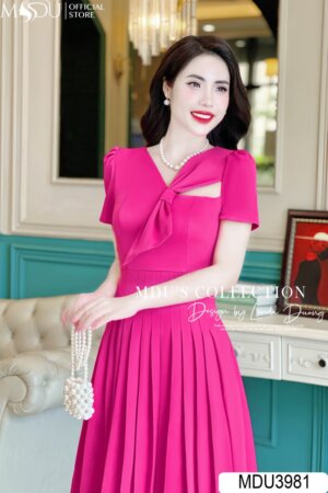 Váy Thiết Kế MDU3981 – Màu Hồng Xếp Li Tỉ Mỉ Phối Cùng Chi Tiết Cut – Out Trước Ngực Điệu Đà