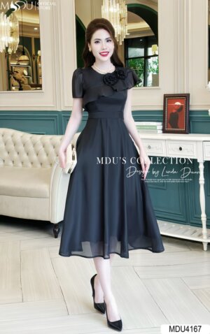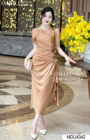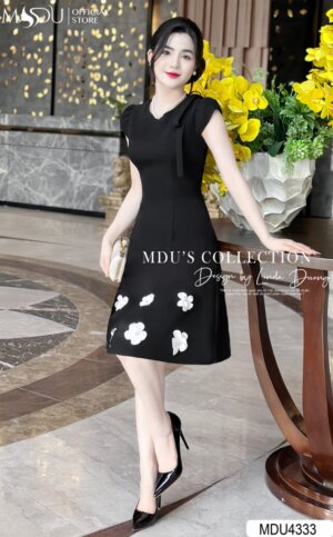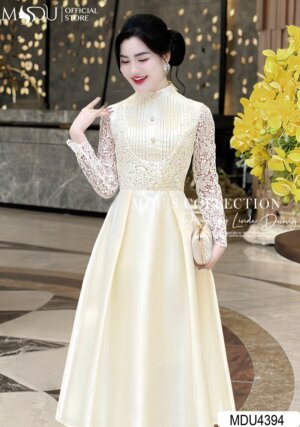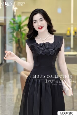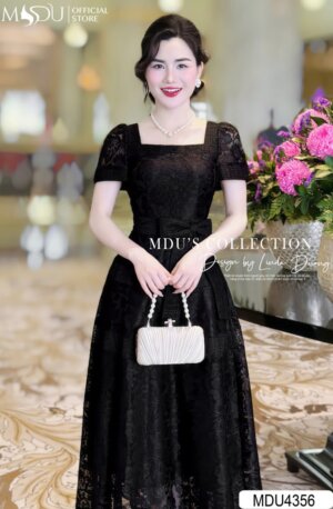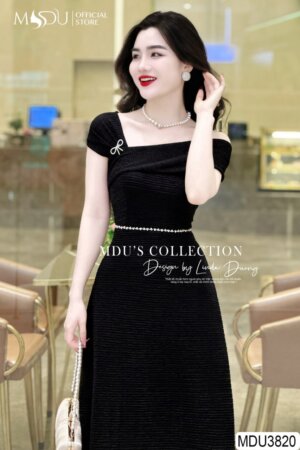 Váy Thiết Kế MDU3733 – Chất Nhung Cao Cấp Phối Cùng Cổ Vuông Cách Điệu Đính Ngọc Sang Trọng