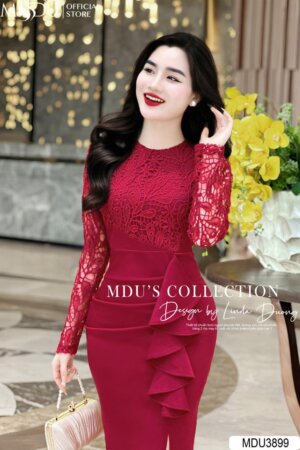 Váy Thiết Kế MDU3899 – Màu Đỏ Sang Chảnh Quyến Rũ Phối Cùng Chất Ren Được Thiết Kế Cầu Kỳ