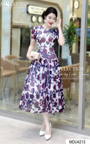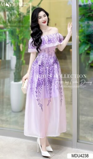 Váy Dáng Xòe MDU4238 Trễ Vai Cùng Họa Tiết Đơn Điệu