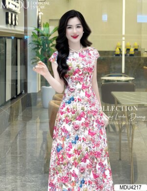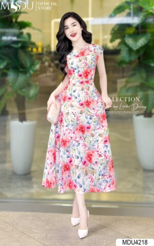 Váy Thiết Kế MDU4015 – Màu Đỏ Đô Sang Chảnh Với Họa Tiết Hoa Tạo Điểm Nhấn Cho Váy Tôn Lên Vẻ Đẹp Kiêu Kì