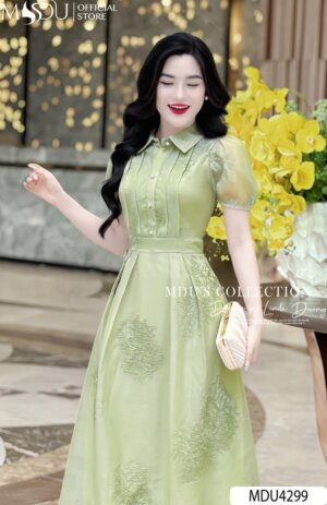 Váy Thiết Kế MDU4299 – Màu Xanh Lá Bắt Mắt Cổ Sơ Mi Thanh Lịch Cùng Họa Tiết Thêu Nổi Độc Đáo