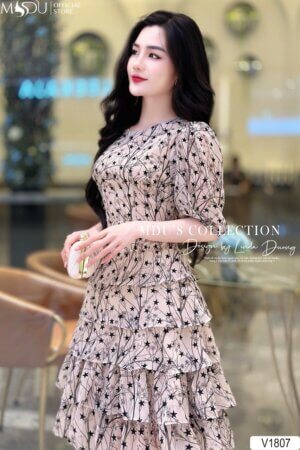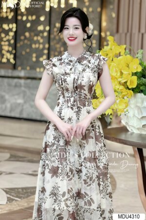 Váy Thiết Kế MDU3803 Dáng Ôm Tông Nâu Cổ Cut Out