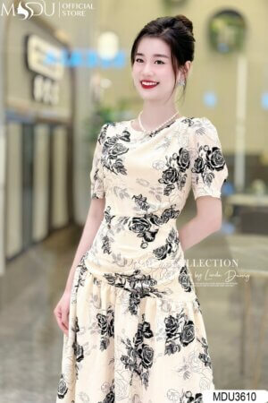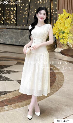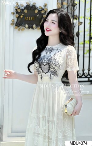 Váy Thiết Kế MDU4374 – Màu Trắng Tinh Khôi Cổ Tròn Họa Tiết Bắt Mắt Tạo Điểm Nhấn Cho Váy