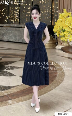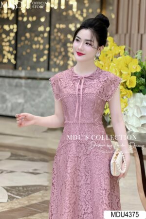 Váy Thiết Kế MDU4375 – Màu Hồng Nhẹ Nhàng Cùng Dây Thắt Nơ Tinh Tế Với Những Đường Vân Thiết Kế Sang Chảnh