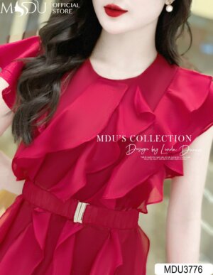 Váy Thiết Kế MDU3776 – Màu Đỏ Quyến Rũ Phối Cùng Đai Váy Được Thiết Kế Độc Đáo Cách Điệu