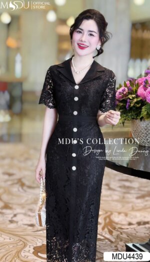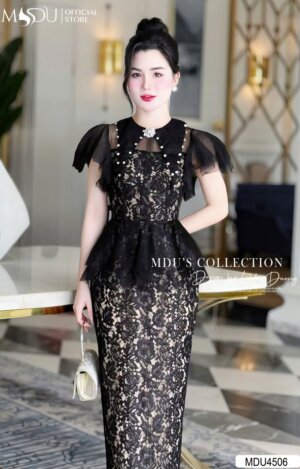 Váy Thiết Kế MDU4506 Ôm Body Màu Đen Họa Tiết Ren Đầy nghệ Thuật