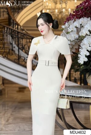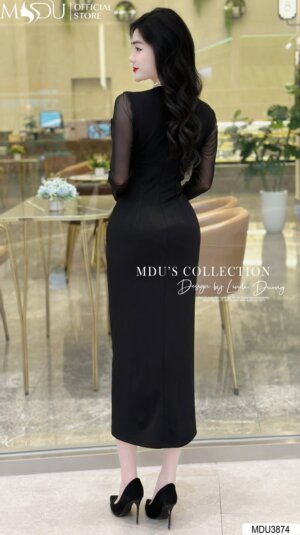 Váy Thiết Kế MDU3647 Dáng Ôm Tay Hến Chân Váy Xẻ Cách Điệu Quý Phái