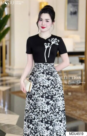 Váy Thiết Kế MDU4697 Họa Tiết Độc Đáo Dáng Xòe Nhẹ