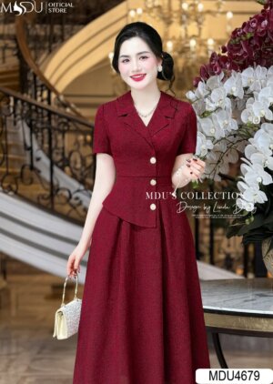 Váy Thiết Kế MDU4622 Màu Đỏ Nổi Bật Dáng Ôm Thanh Thoát