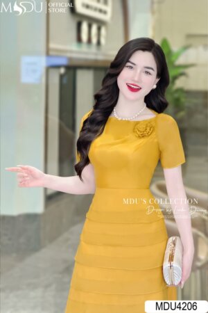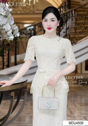 Váy Thiết Kế MDU4509 Chi Tiết Hoa Cài Duyên Dáng, Màu Kem Trang Nhã