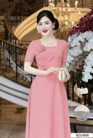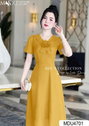 Váy Thiết Kế MDU3970 Dáng Bồng Nhẹ Cổ V Cách Điệu