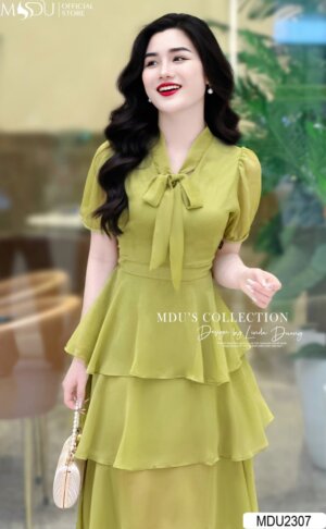 Váy Thiết Kế MDU2307 Màu Xanh Trẻ Trung Xếp Ly Tầng