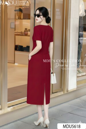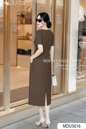 Dáng váy suông ngắn vừa ôm nhẹ theo đường cong cơ thể, tôn dáng mà vẫn thoải mái khi vận động. Cổ chữ V giúp kéo dài đường cổ, mang lại cảm giác thanh mảnh và gợi nét quyến rũ tinh tế. Tay ngắn bồng nhẹ tạo độ cân đối và mềm mại cho tổng thể.