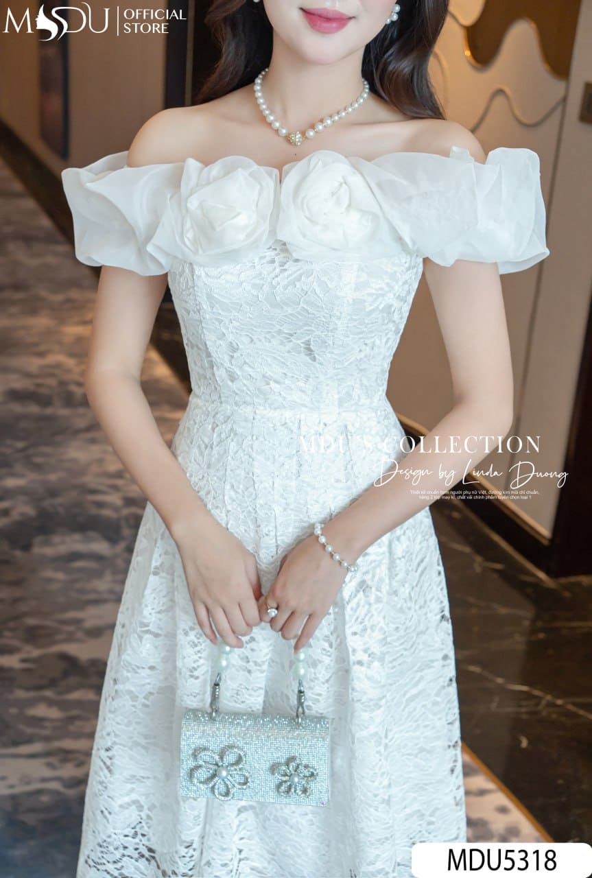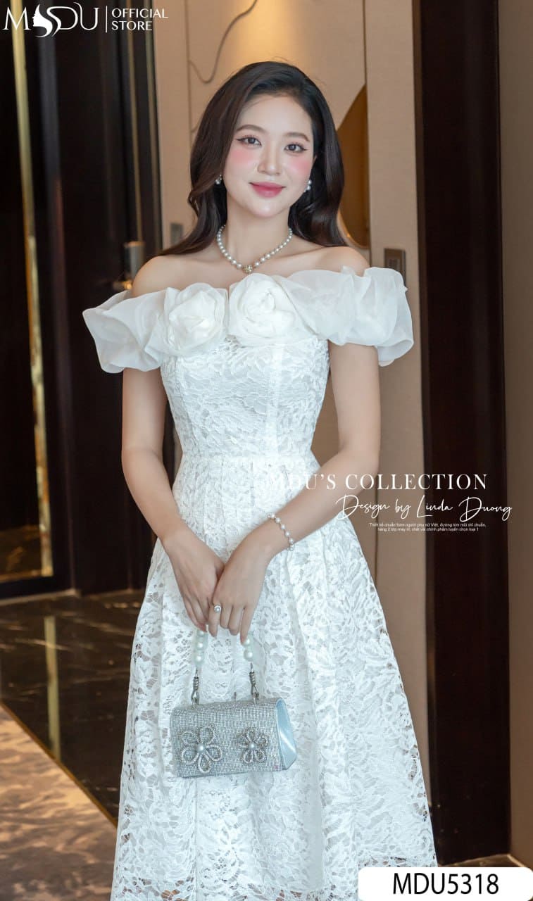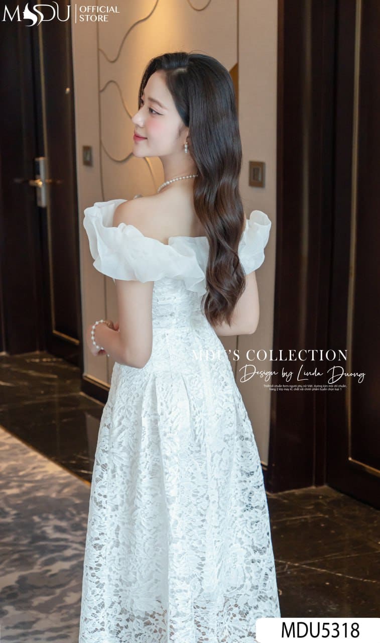 MDU Fashion hân hạnh ra mắt thiết kế MDU5318 – bản hòa ca thanh tao giữa sắc trắng tinh khôi và những lớp chất liệu cao cấp được xử lý đầy nghệ thuật. Toàn bộ thân váy phủ ren hoa nổi dày dặn, mềm mại, tạo chiều sâu thị giác và cảm giác trang nhã trong từng chuyển động. Phần vai trễ được phủ Tơ Organza nhẹ như sương, bắt sáng tự nhiên, mang đến vẻ đẹp bồng bềnh, dịu dàng nhưng vẫn đầy khí chất.