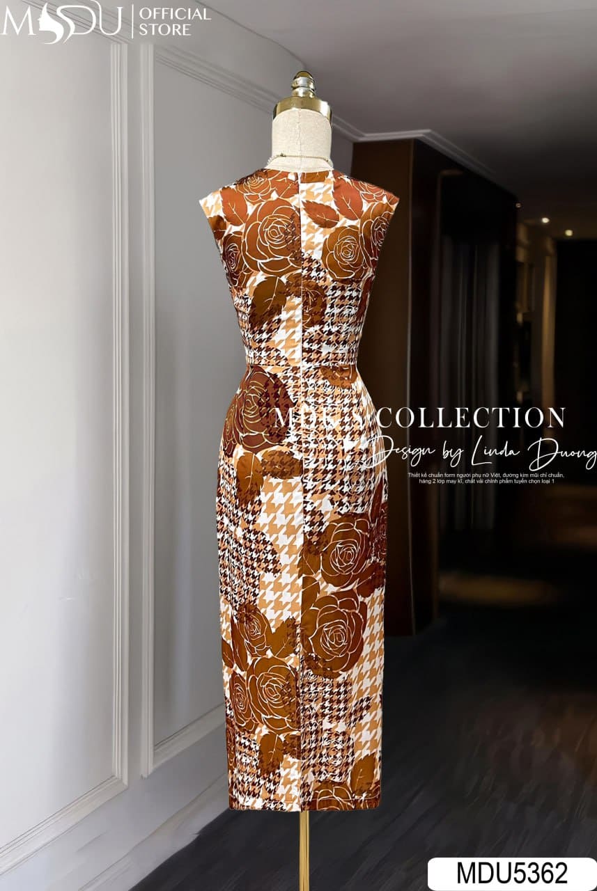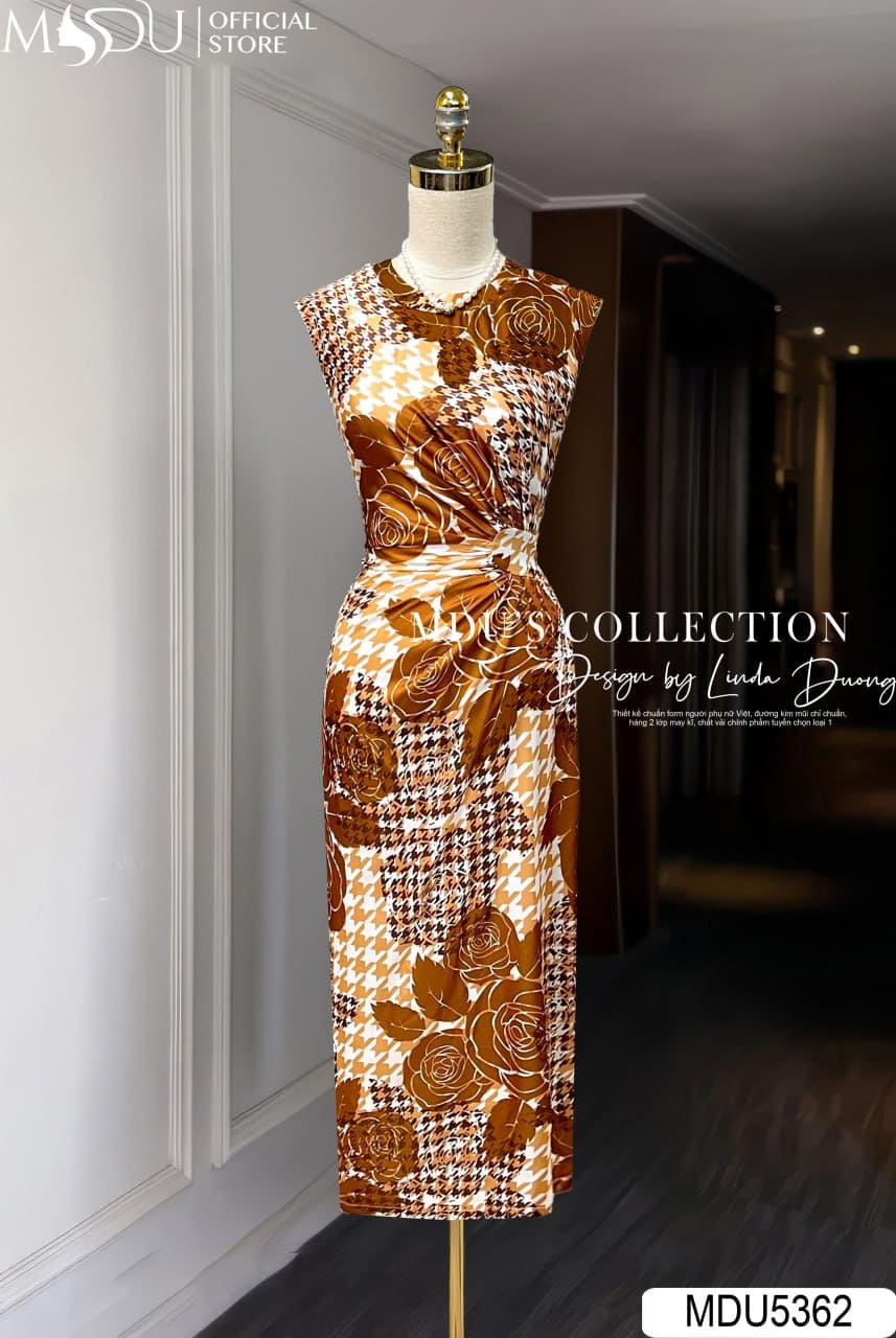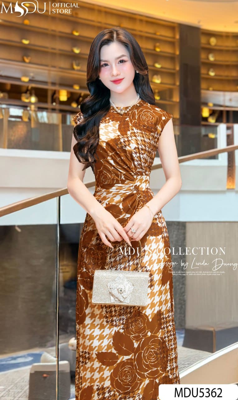 MDU5362 – Váy Lụa Satin Cao Cấp Họa Tiết Caramel – Sang Trọng, Quyến Rũ Và Đầy Cuốn Hút