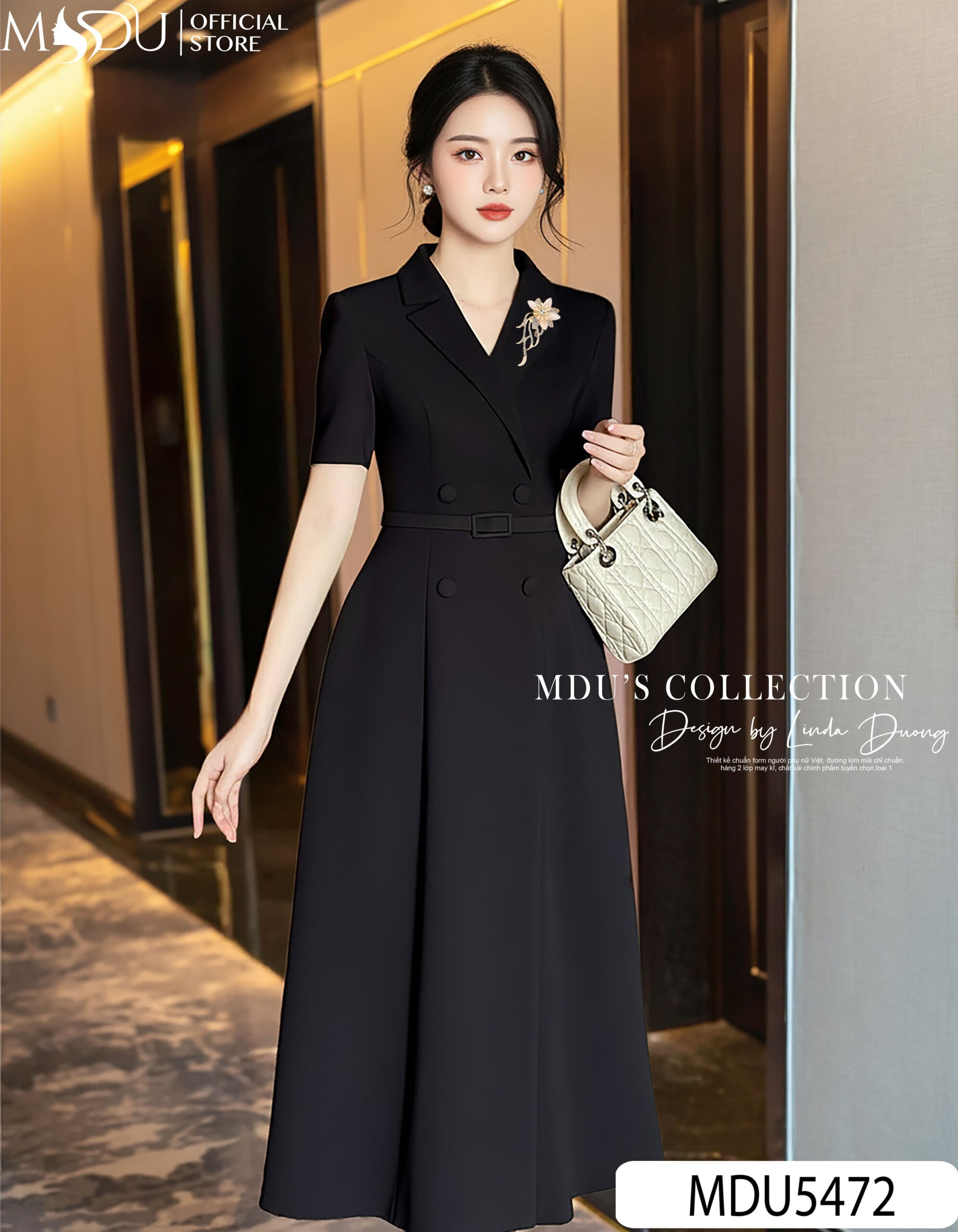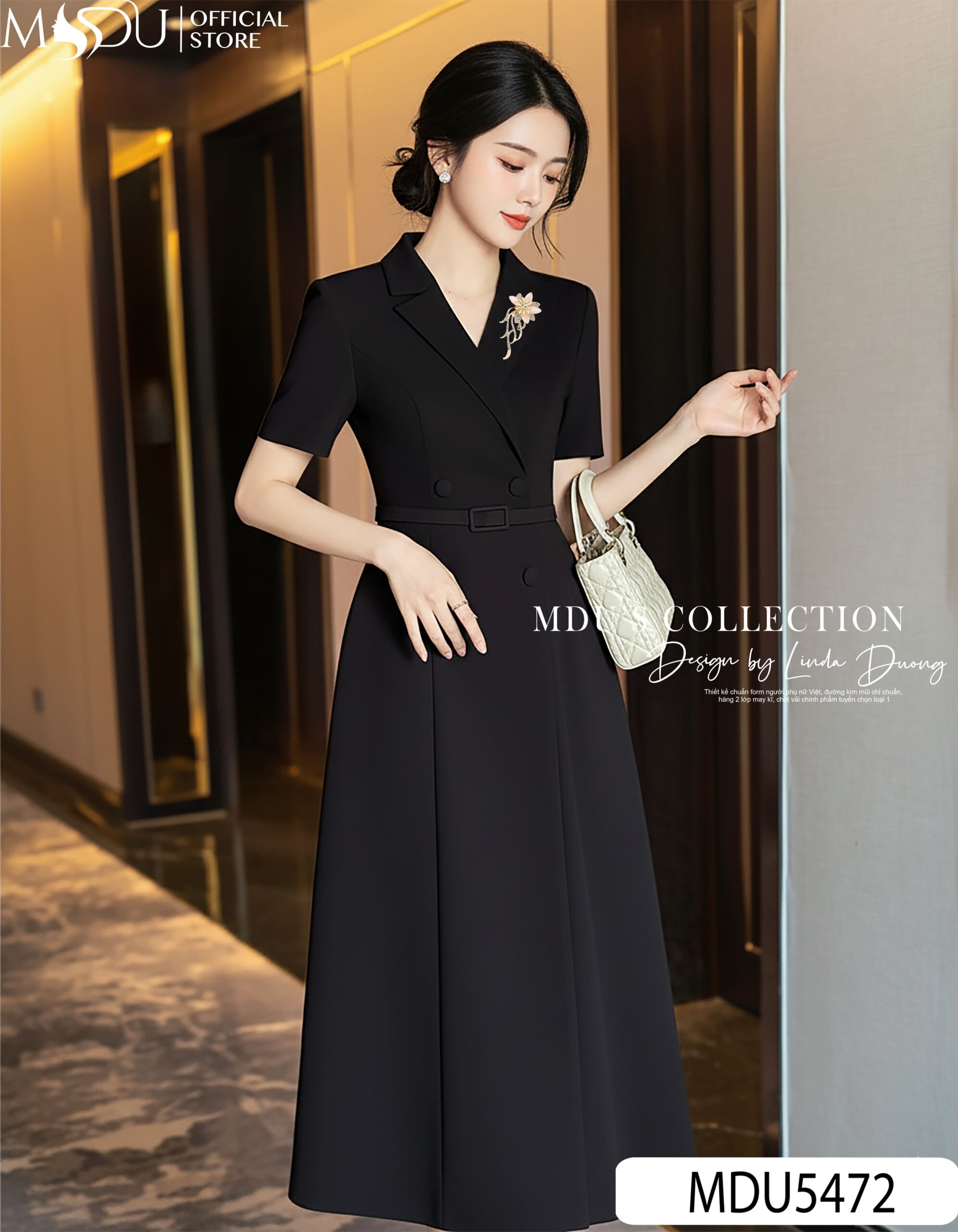 Váy Thiết Kế MDU5472 Gold Nhật Cao Cấp Cổ Vest Đai Rời Sang Trọng Và Hiện Đại