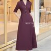 Váy Thiết Kế MDU5578 Mango Ý Dáng Xòe Midi Cổ Vest Tím Mận Quý Phái