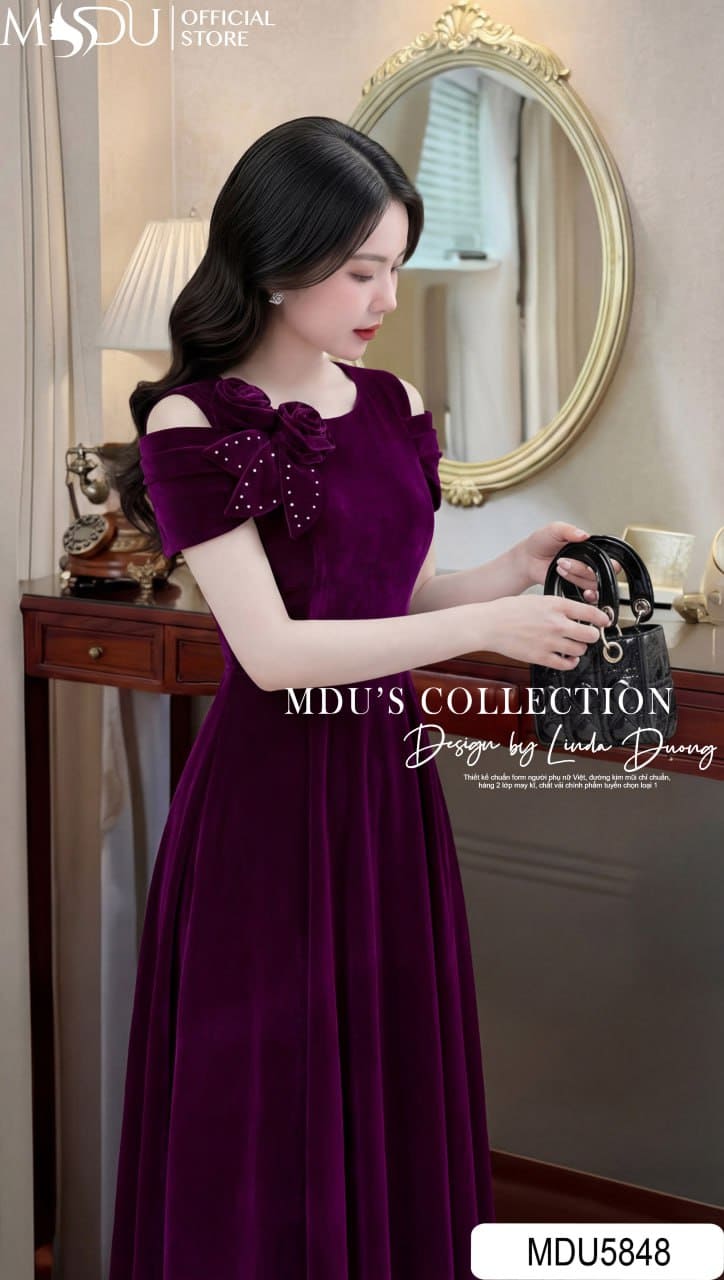MDU Fashion giới thiệu thiết kế MDU5848 – chiếc váy liền mang sắc đỏ ánh tím quyến rũ, gợi lên vẻ đẹp quý phái và sang trọng trong từng khoảnh khắc xuất hiện. Gam màu nổi bật kết hợp cùng chất liệu cao cấp giúp tổng thể trang phục vừa cuốn hút vừa tinh tế, phù hợp cho những dịp đặc biệt.