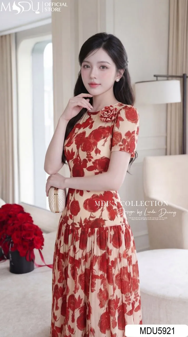 MDU Fashion hân hạnh giới thiệu thiết kế MDU5921 – chiếc váy liền thân mang gam màu kem lạ mắt kết hợp họa tiết hoa đỏ rực rỡ, tạo nên vẻ đẹp vừa thanh lịch vừa cuốn hút đầy ấn tượng. Tổng thể thiết kế là sự hòa quyện giữa nét dịu dàng và điểm nhấn nổi bật, giúp quý cô tự tin tỏa sáng trong mọi khoảnh khắc.