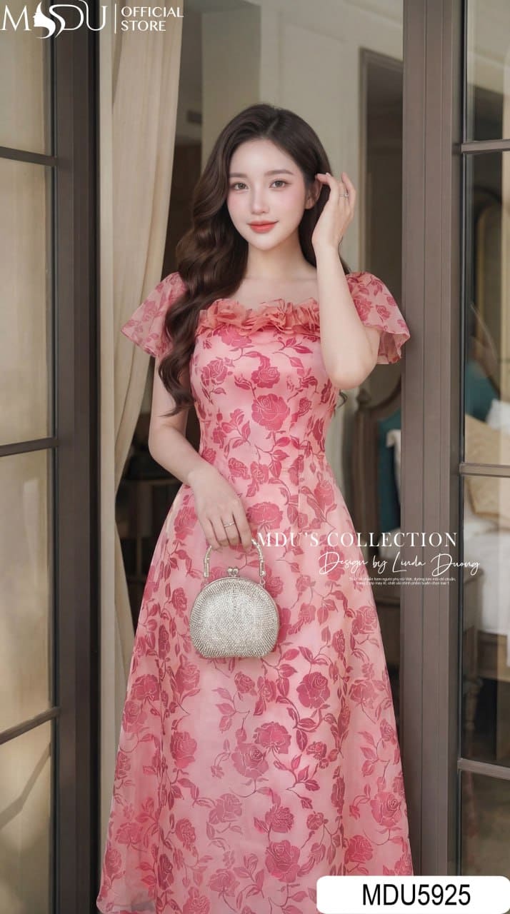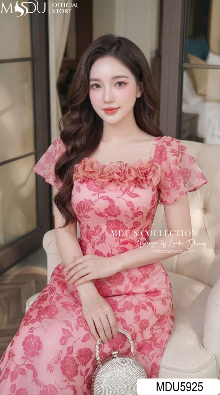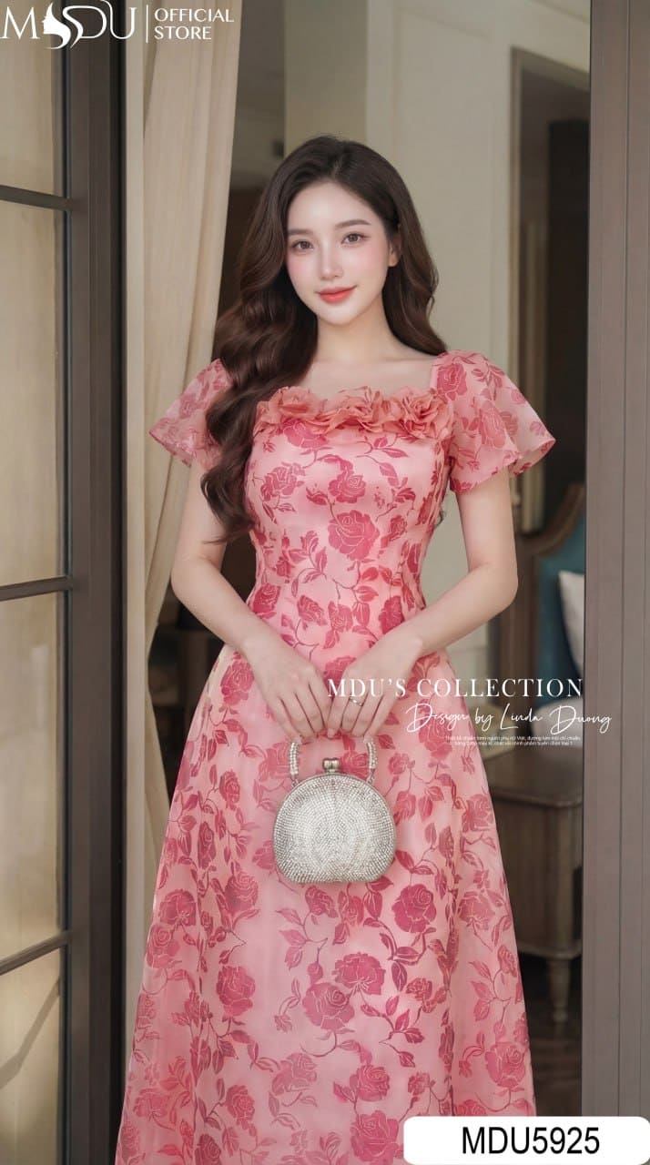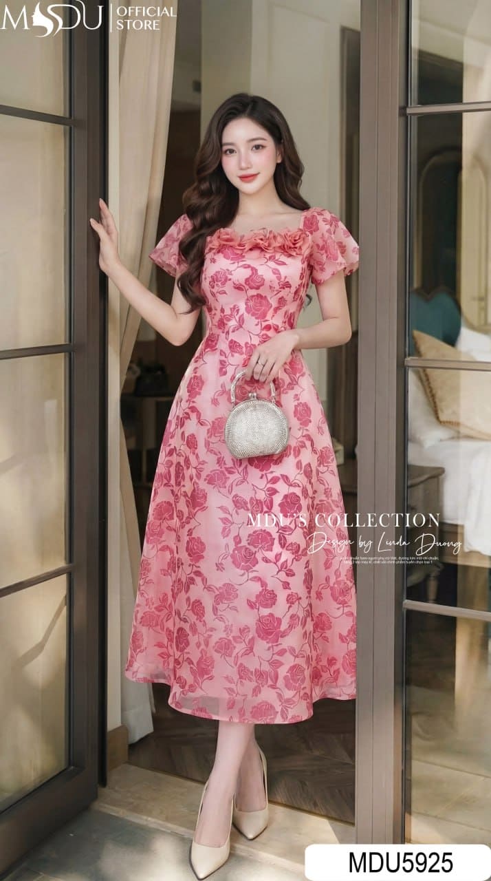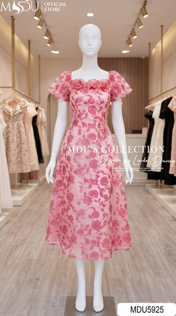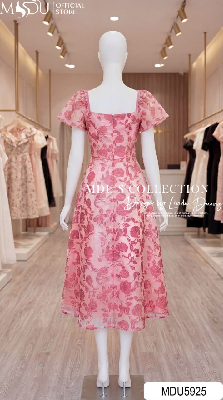 Váy Thiết Kế MDU5925 Hồng Họa Tiết Ngọt Ngào – Bay Bổng Dịu Dàng, Nữ Tính Cuốn Hút