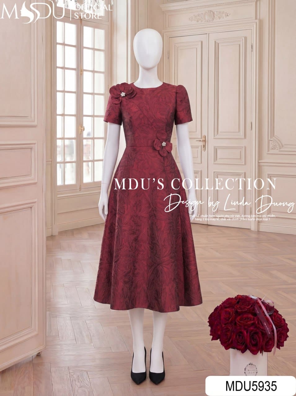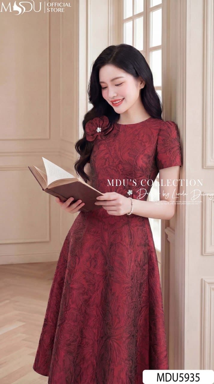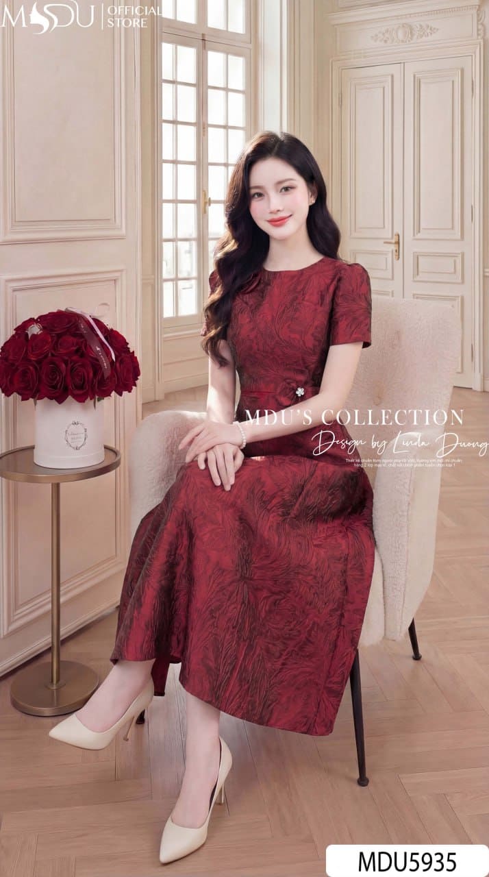 Váy Thiết Kế MDU5935 Đỏ Đô Sang Trọng – Quyến Rũ Kiêu Sa, Thanh Lịch Cuốn Hút