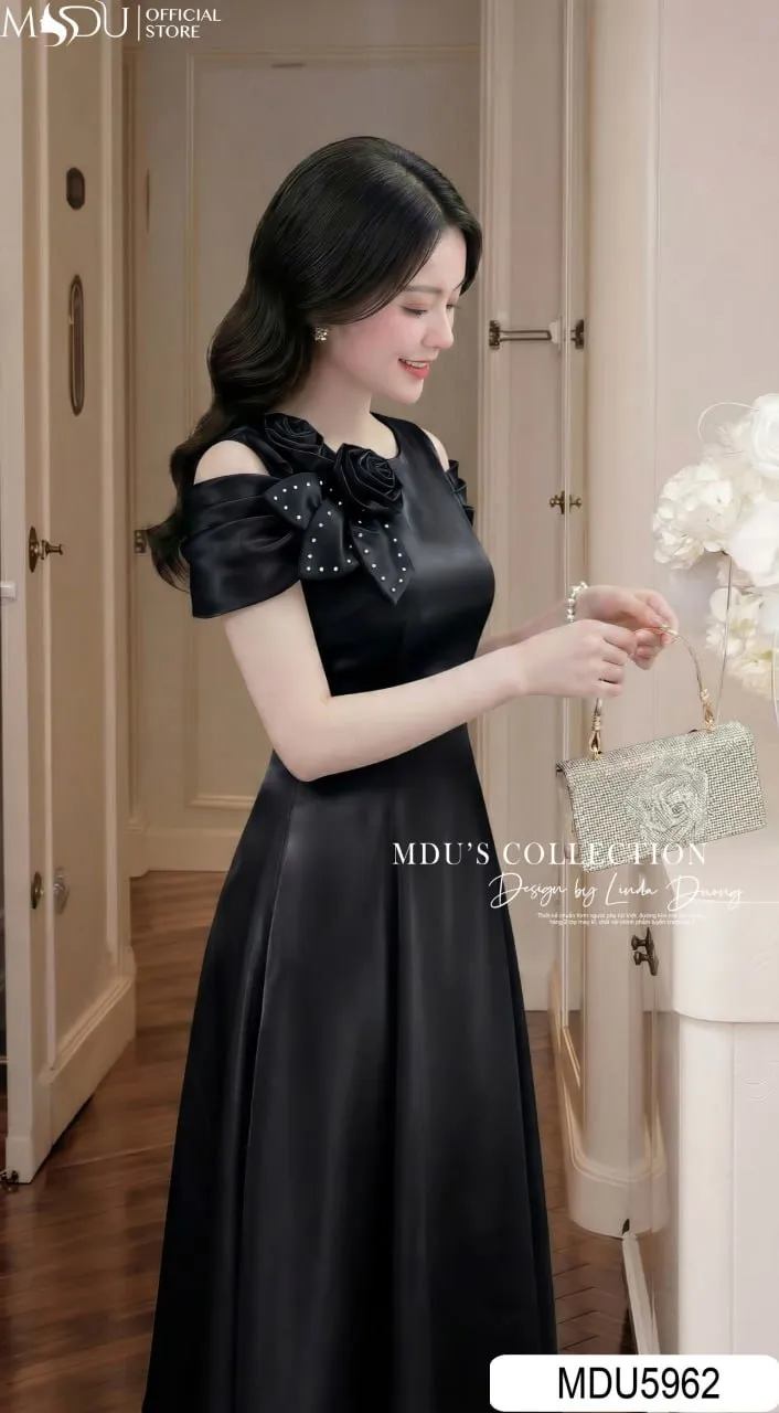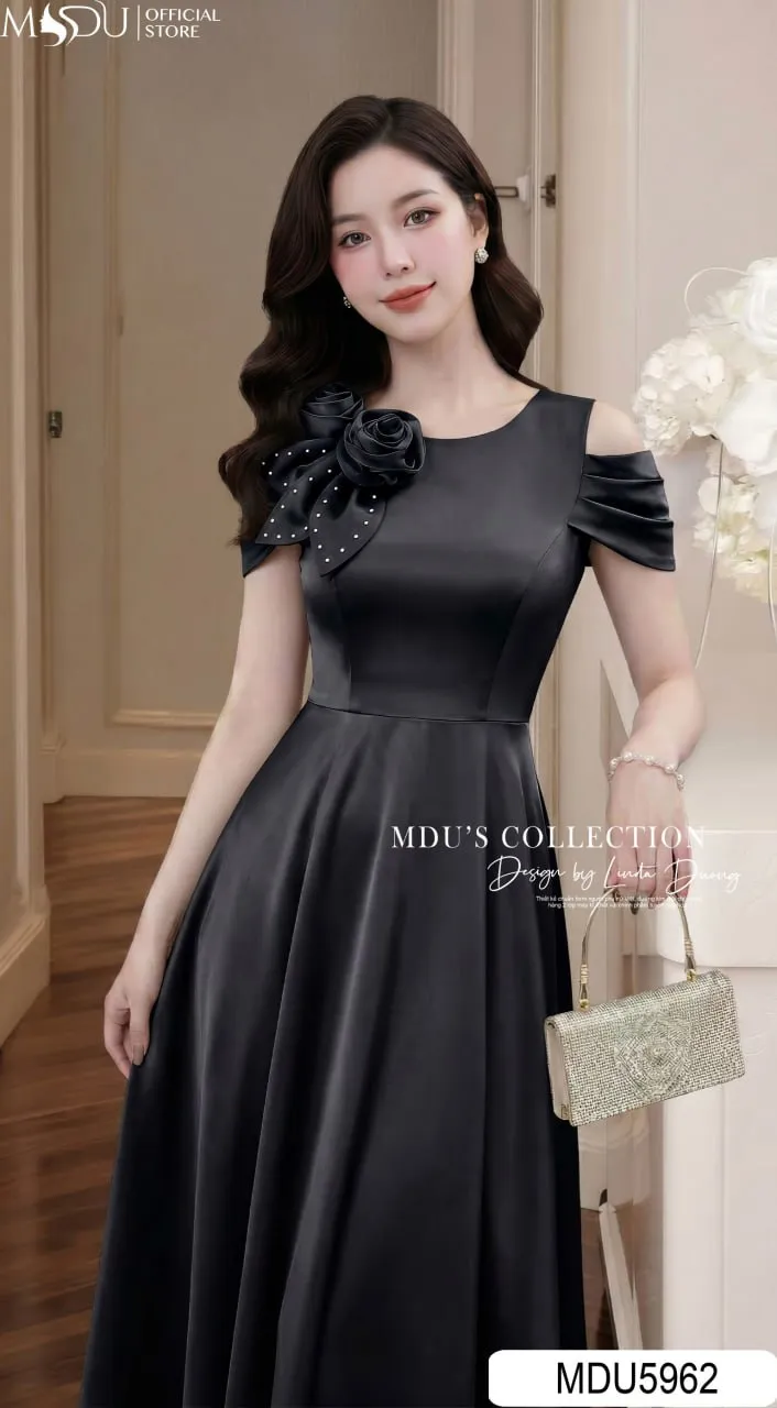 Váy Thiết Kế MDU5962 Lụa Vân Đen Sang Trọng – Quyến Rũ Tinh Tế Và Đẳng Cấp Hiện Đại