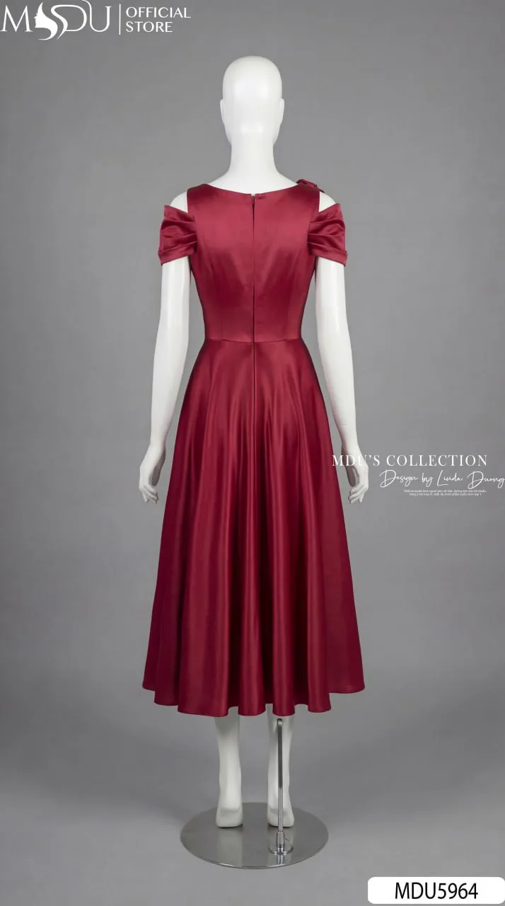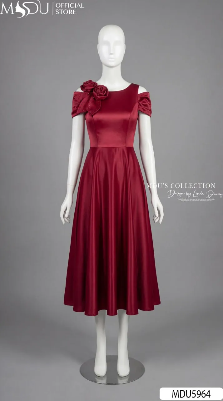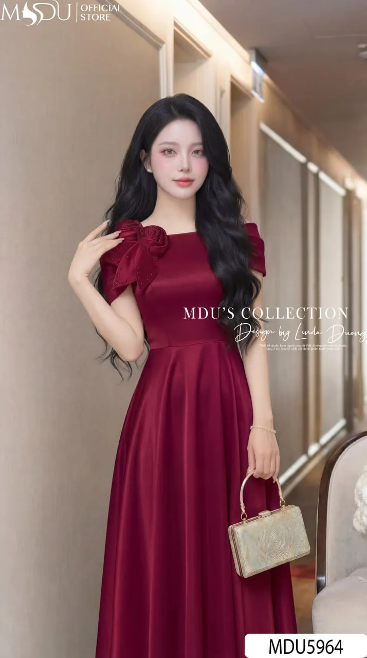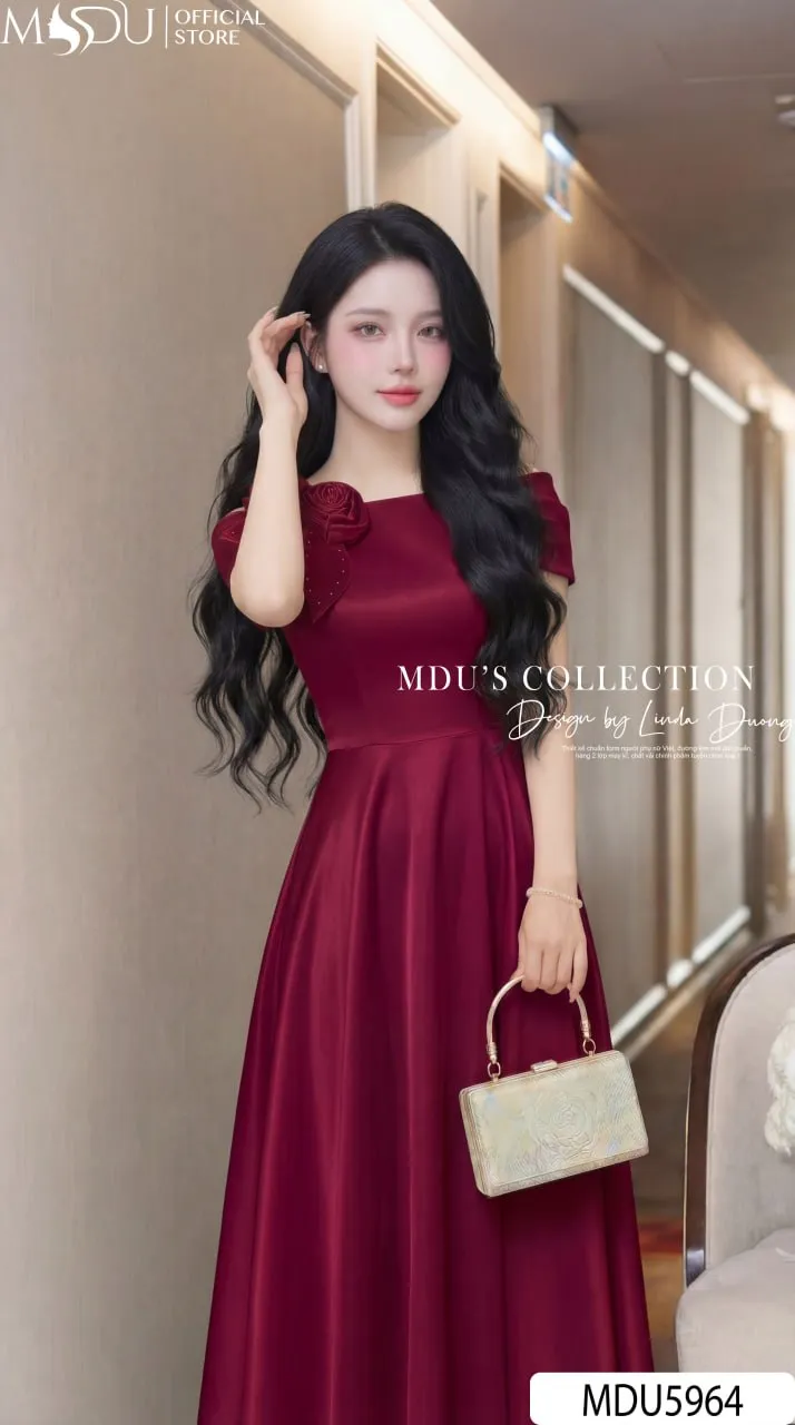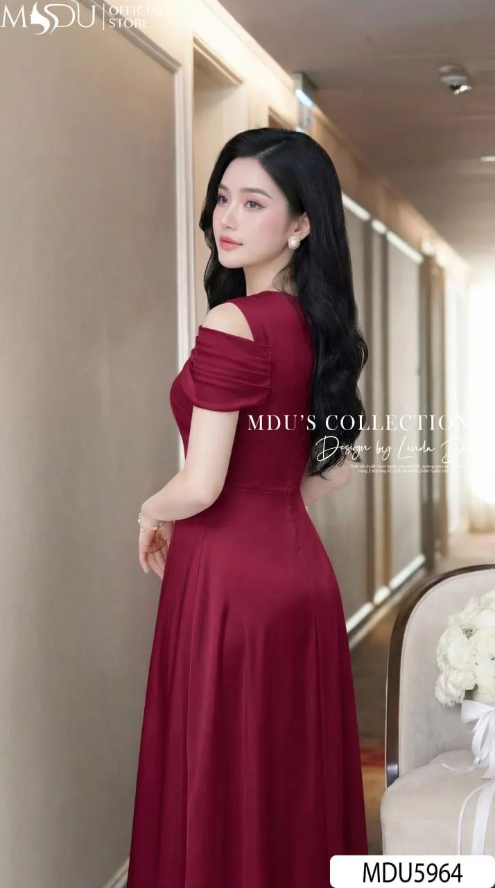 Váy Thiết Kế MDU5964 Lụa Vân Đỏ Đô Quyến Rũ – Sang Trọng, Kiêu Sa Và Đầy Cuốn Hút