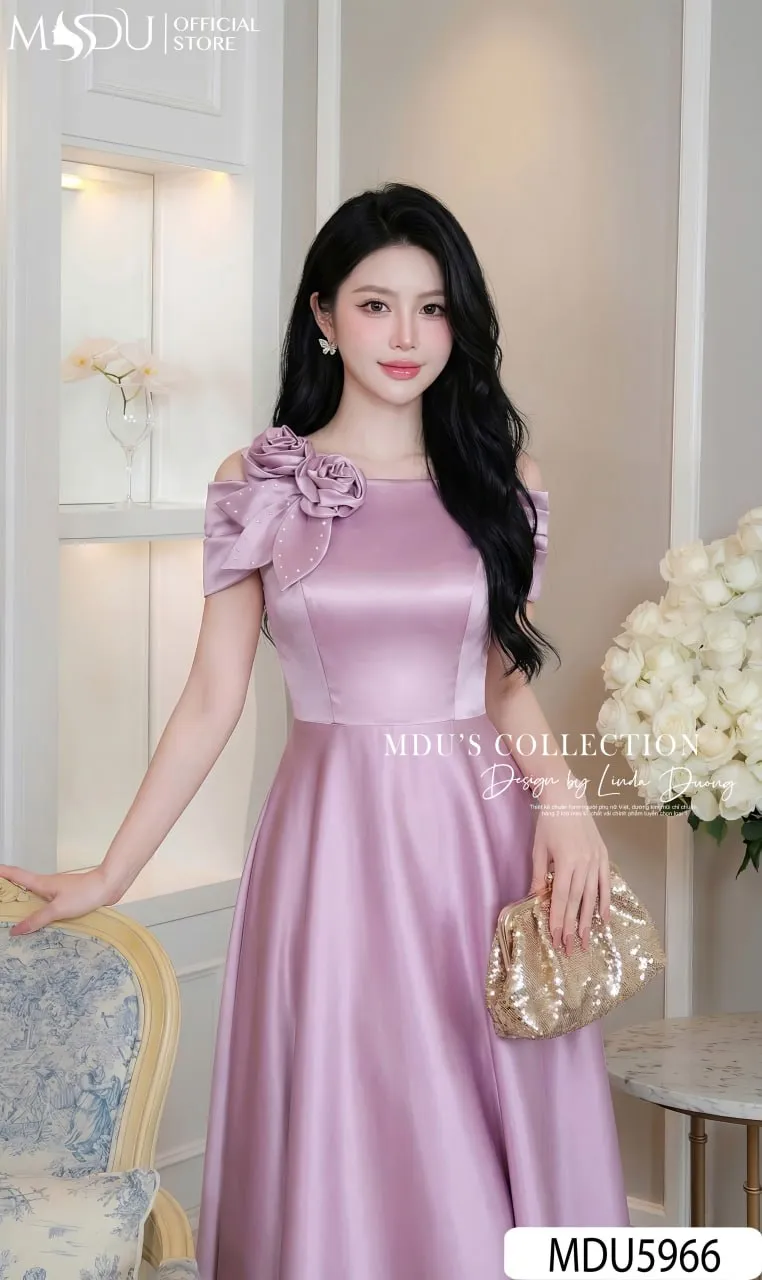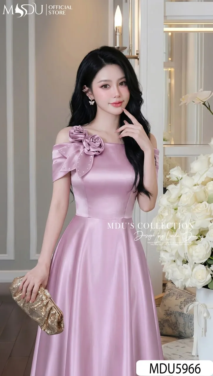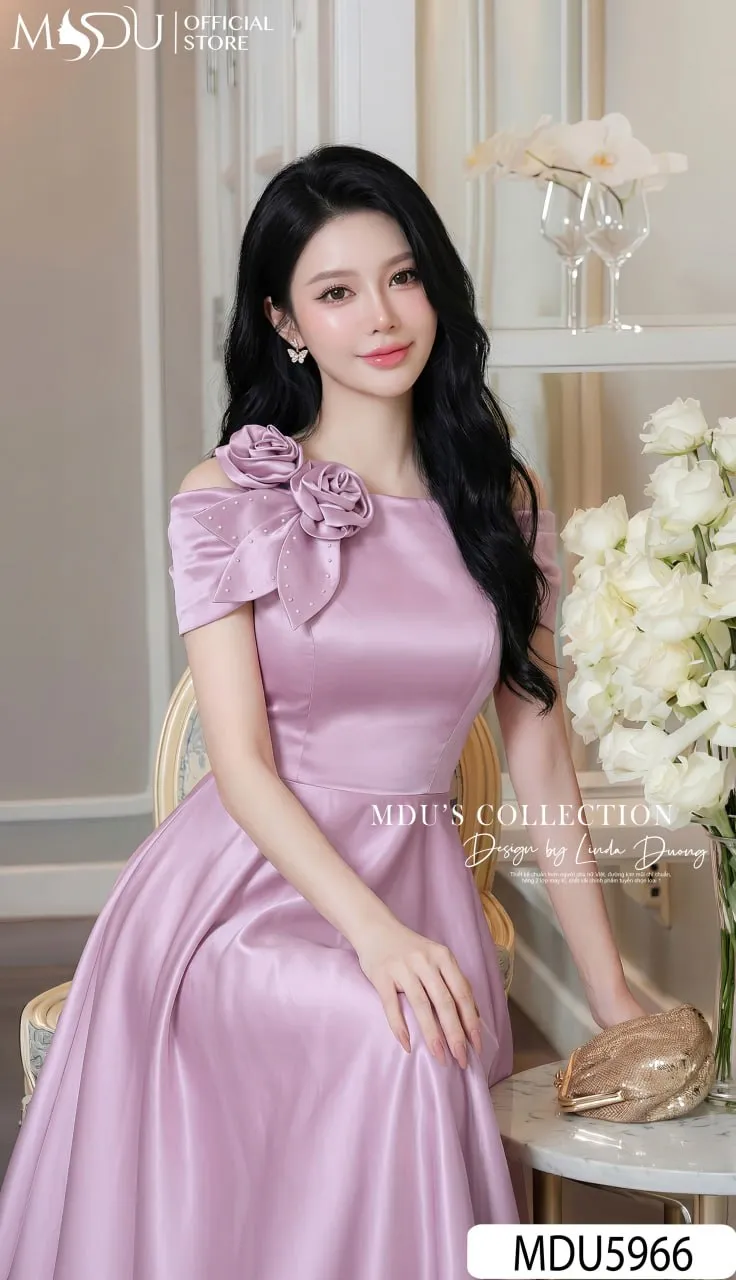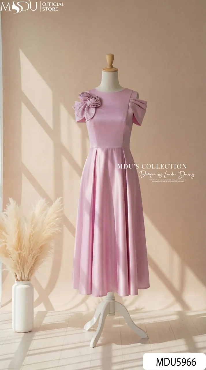 Váy Thiết Kế MDU5966 Lụa Vân Hồng Ngọt Ngào – Nữ Tính, Thanh Lịch Và Cuốn Hút