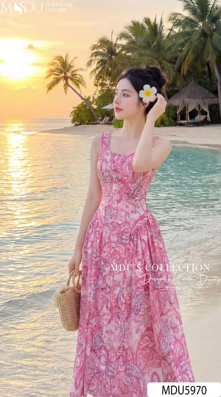 Váy Thiết Kế MDU5970 – Hồng Họa Tiết Nổi Bật, Trẻ Trung Và Bay Bổng Đầy Cuốn Hút
