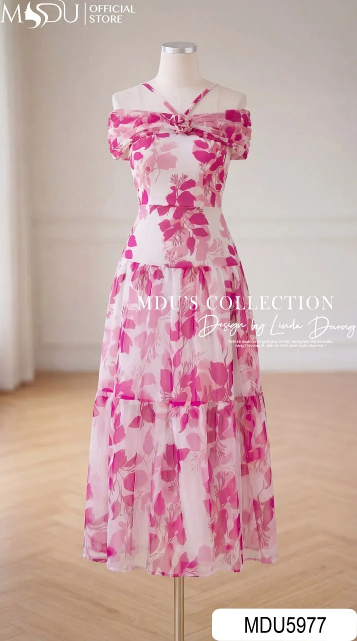 MDU5977 nổi bật với sắc hồng họa tiết ngọt ngào, mang đến vẻ đẹp rạng rỡ và nữ tính cho quý cô hiện đại. Chất liệu tơ óng Hàn cao cấp giúp váy mềm mại, bay bổng và toát lên nét sang trọng tinh tế. Thiết kế dáng xòe với tùng váy ly nhẹ kết hợp tay vai giúp che khuyết điểm và tôn dáng hiệu quả. Điểm nhấn dây buộc cổ linh hoạt cùng hoa thủ công tỉ mỉ mang lại diện mạo duyên dáng và cuốn hút.