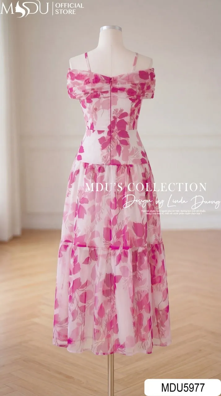 Váy Thiết Kế MDU5977 Tơ Óng Hàn Hồng Họa Tiết Ngọt Ngào, Bay Bổng Và Duyên Dáng
