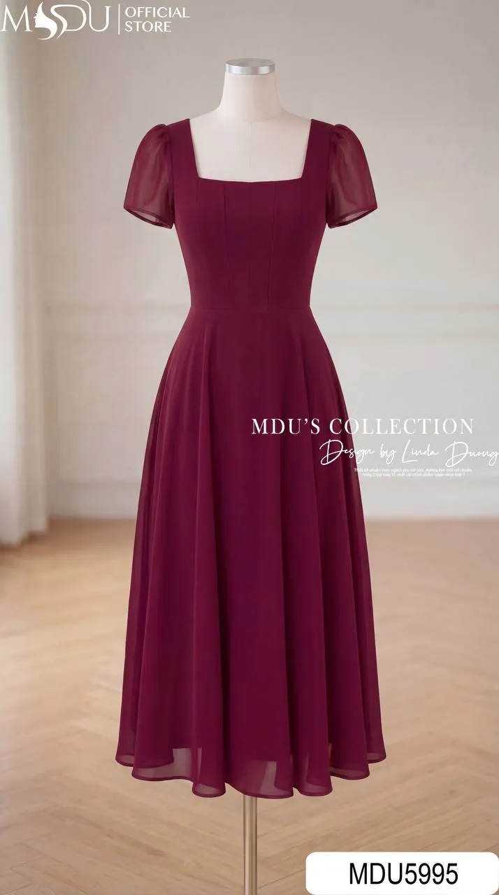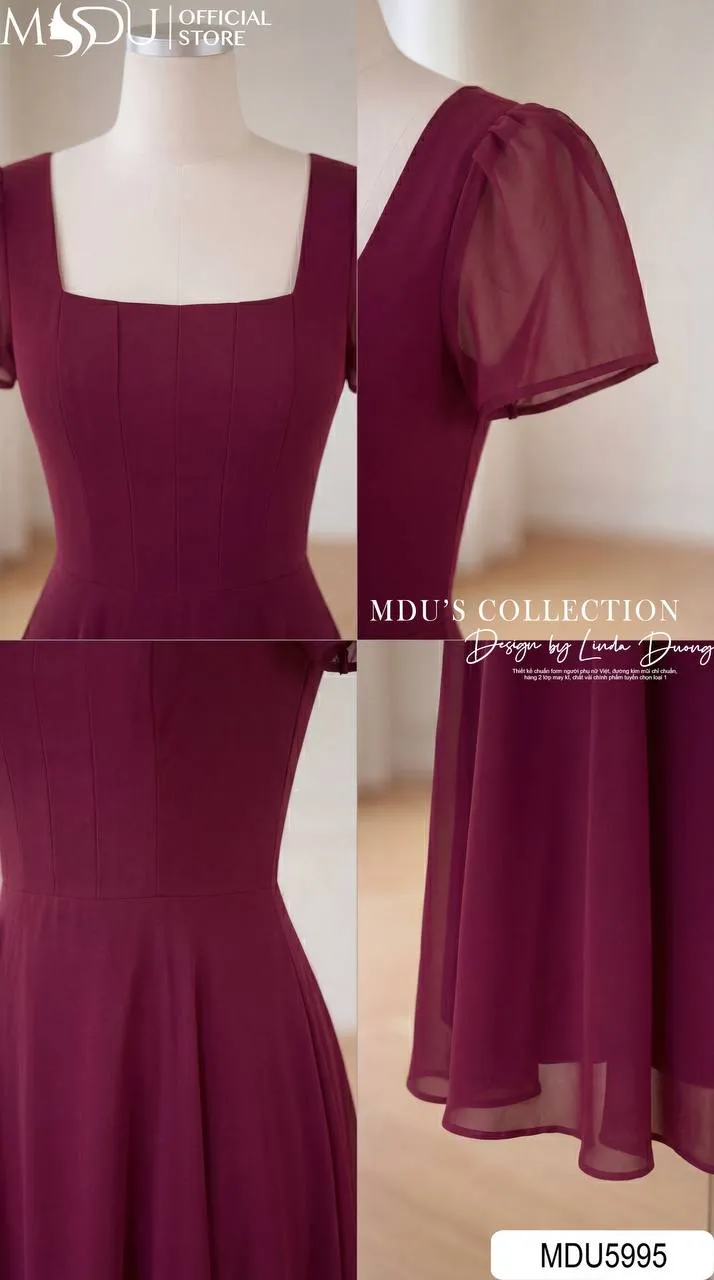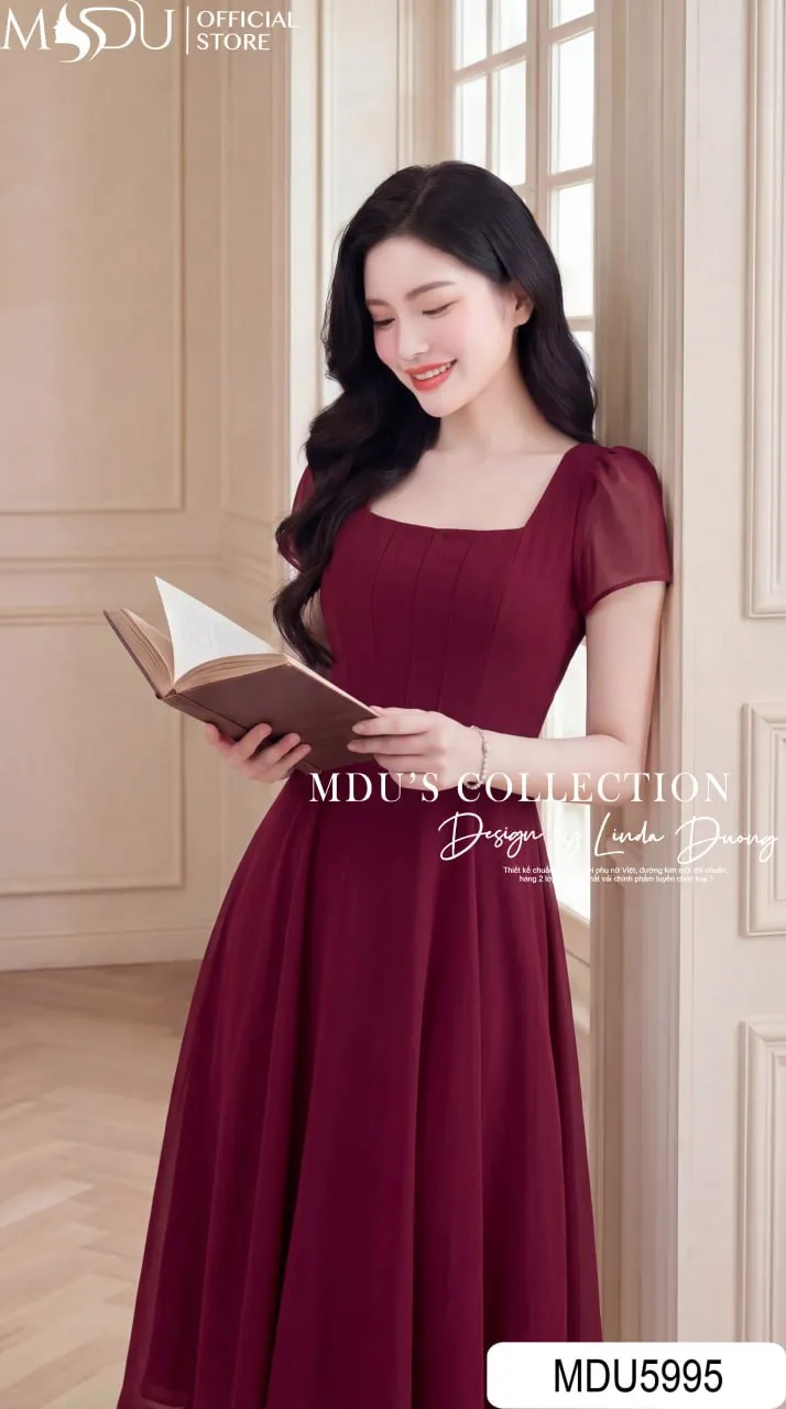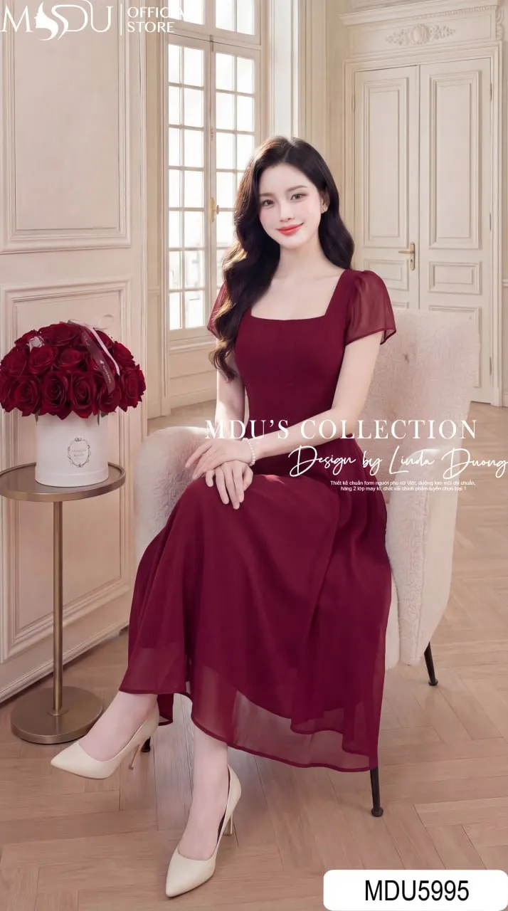 Váy Thiết Kế MDU5995 Tơ Óng Hàn Cao Cấp Đỏ Đô – Sang Trọng, Quyến Rũ Và Đầy Khí Chất